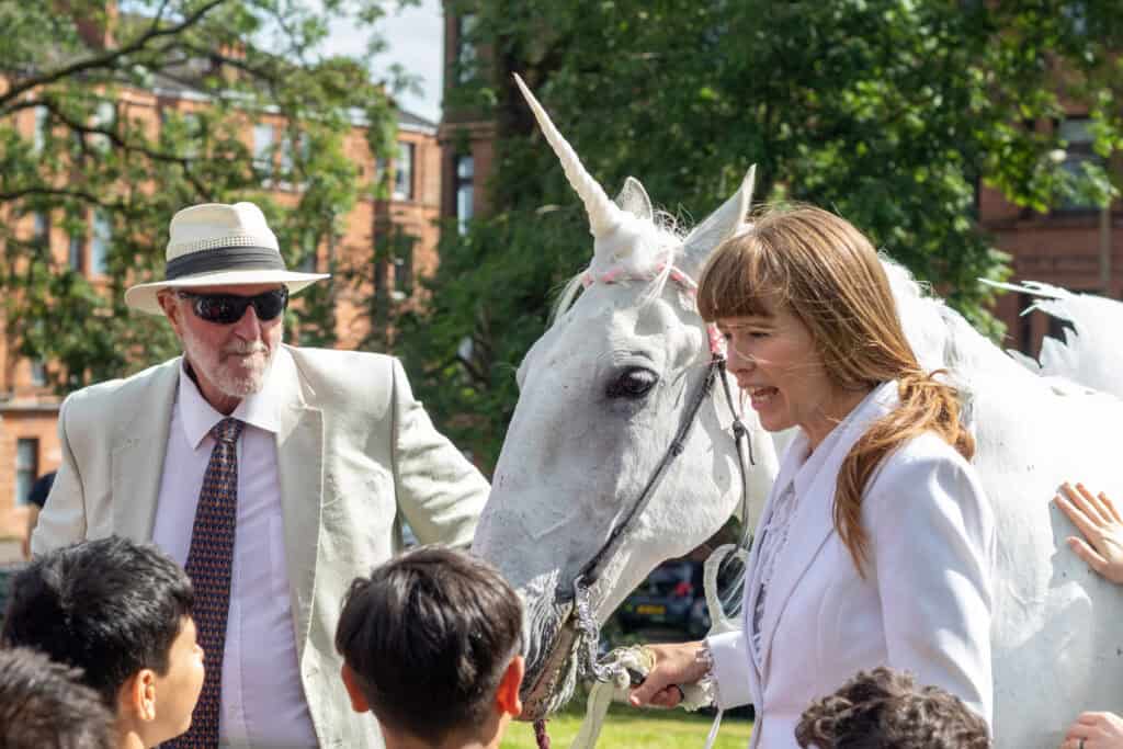 Everybody was decked out in different costumes and wearing t-shirts plastered with messaging, proudly representing their causes, countries and identities – including a ‘real’ life unicorn, representing Scotland’s national animal.