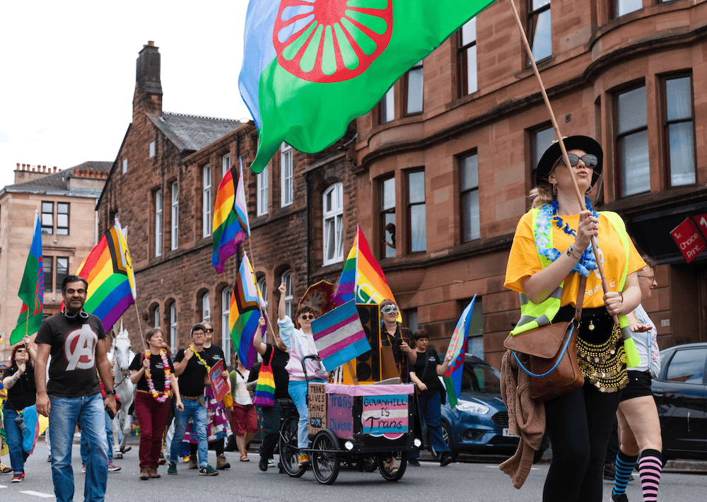 The parade reflected the diversity and vibrancy of Govanhill, an area in Glasgow often portrayed in bad light for those same reasons, with local organisations like Romano Lav, Govanhill Housing Association, Glasgow Autonomous Space (GAS), Govanhill Youth Club, Scottish Arab Women’s Association, different LGBTQ+ organisations and many others holding up their banners, chanting and making noise – visible and proud.